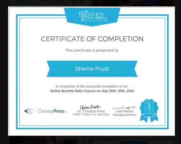 A few of the courses I taken over the years include : TOTS with Autumn Henning, numerous courses through Sarah Hornsby of Myomentor, BMTM with Brooke Pettus, the IBCLC Masterclass in Oral Habilitation along with courses through the IAOM of which I am a member. I achieved Ambassador status through The Breathe Institute by obtaining course training in infant frenectomy care.