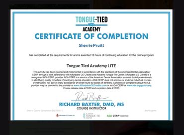 I am the founder of Tennessee Tongue-Tie Center in Sumner County ,TN where I utilize my training in these areas on a daily basis assisting laser releases, providing pre and post Frenectomy care, lactation support and oral habilitation to infants and Myofunctional Therapy to older patients.